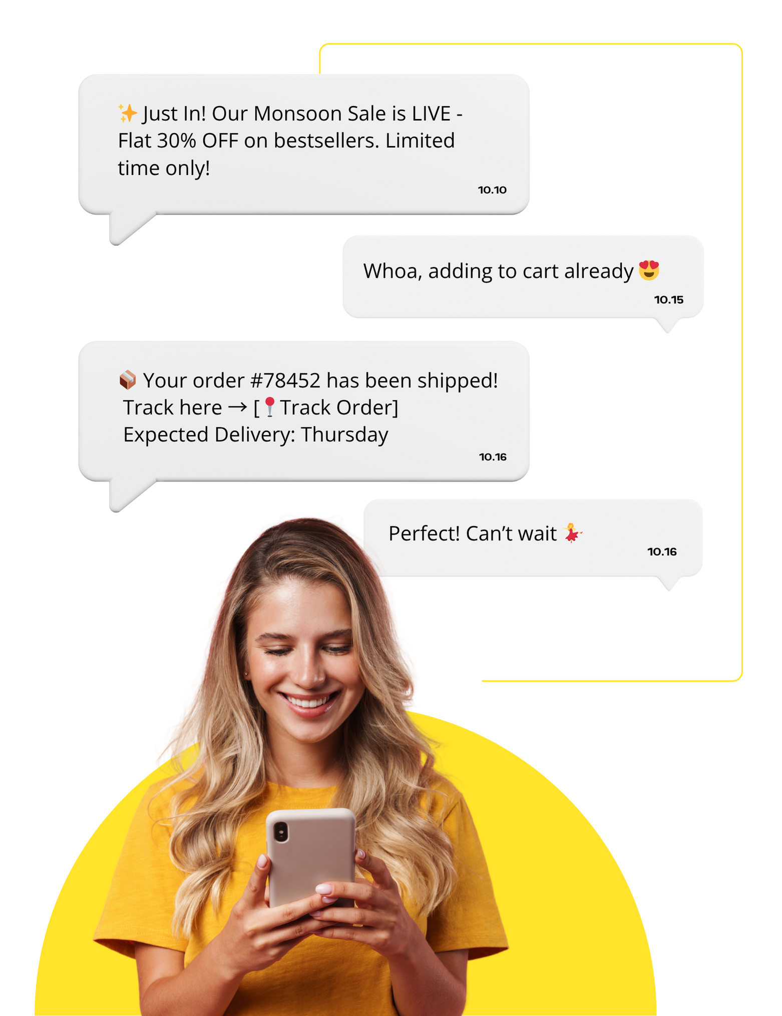 Deliver messages instantly or automate them based on triggers. Your customers receive updates on WhatsApp—wherever they are.