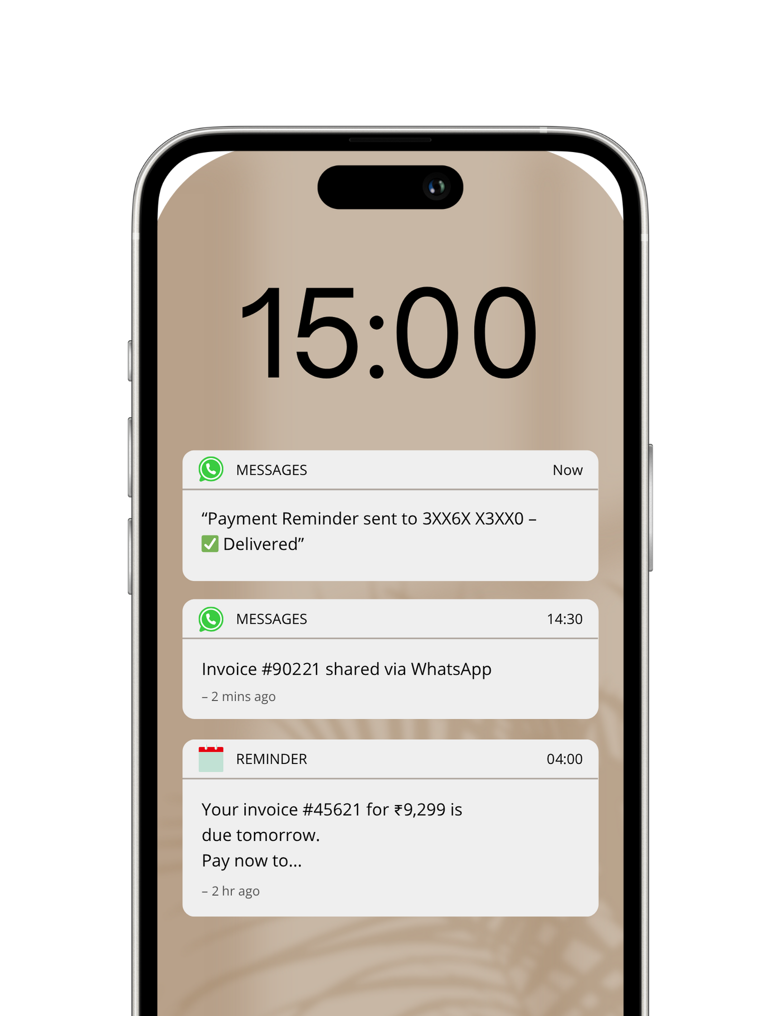 Choose what to send—like invoices or reminders—and personalize messages with dynamic fields like name, due date, and more.